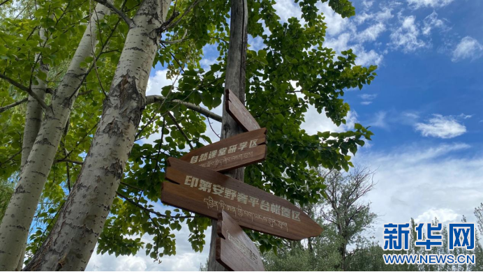 圖為薩己林野奢營地路標(biāo)(8月2號攝)。新華網(wǎng)發(fā) 丹增卓嘎(實(shí)習(xí)生)攝。