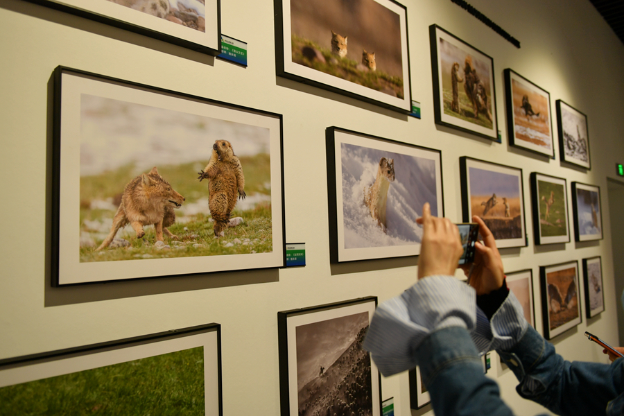圖為祁連山國家公園青海片區(qū)展陳中心內(nèi)展出的攝影作品。