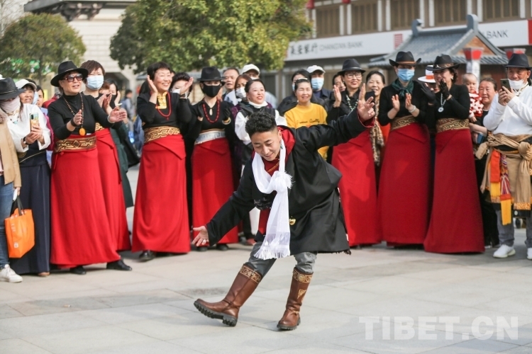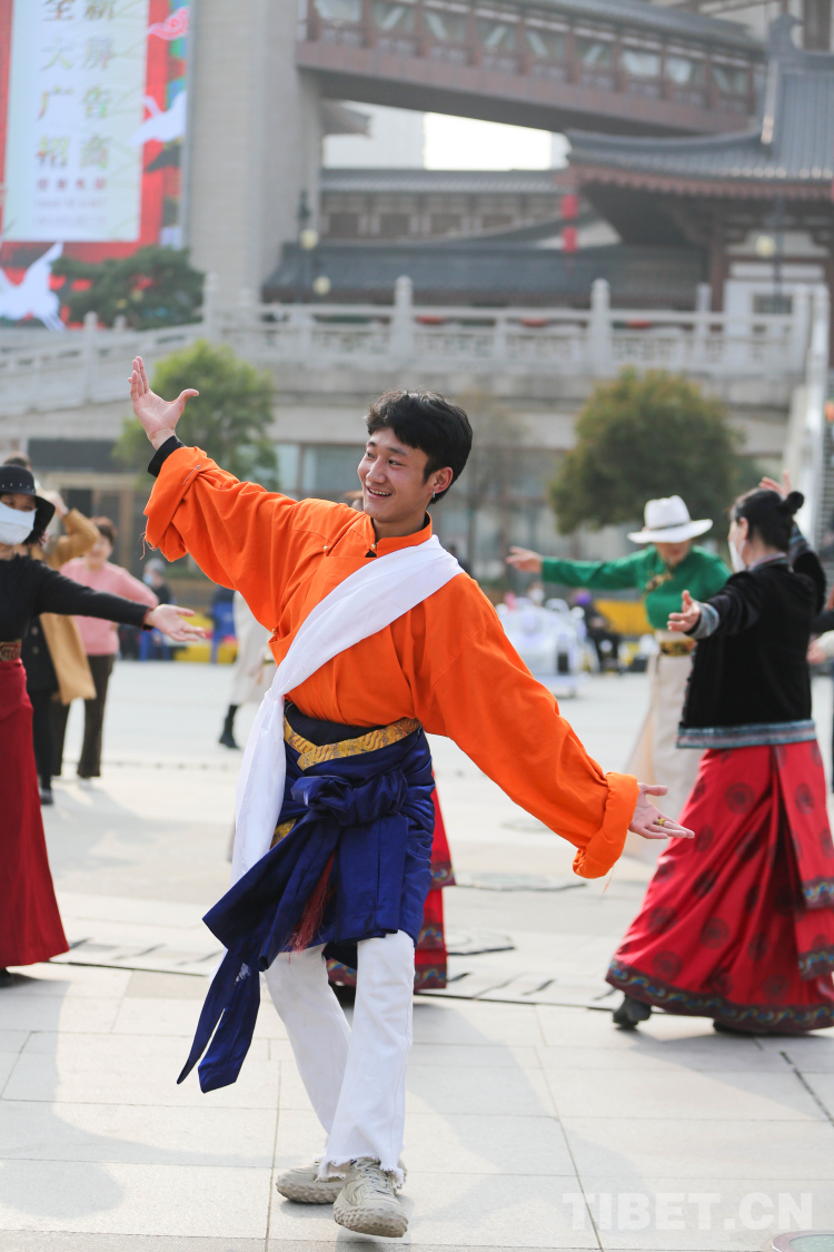 中國西藏網(wǎng)訊 3月21日,由新的社會(huì)階層人士服務(wù)團(tuán)三分團(tuán)主辦、北京藏地神韻非物質(zhì)文化傳播發(fā)展公司承辦的傳統(tǒng)藏舞公益推廣活動(dòng)在西安舉辦。多位藏舞傳承人與藏舞愛好者齊聚西安大唐西市進(jìn)行公益推廣交流。鍋莊、伊舞,《歡迎你們到來》《舞動(dòng)青春年華》《吉祥的哈達(dá)》……一曲接著一曲,舞出了藏族舞蹈的無限魅力!(中國西藏網(wǎng) 記者/呂靜 姚浩然)