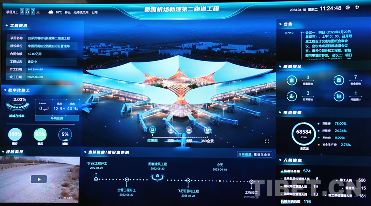 圖為拉薩貢嘎機場新建第二跑道建設(shè)項目綜合管控平臺 翻拍:王佳豪