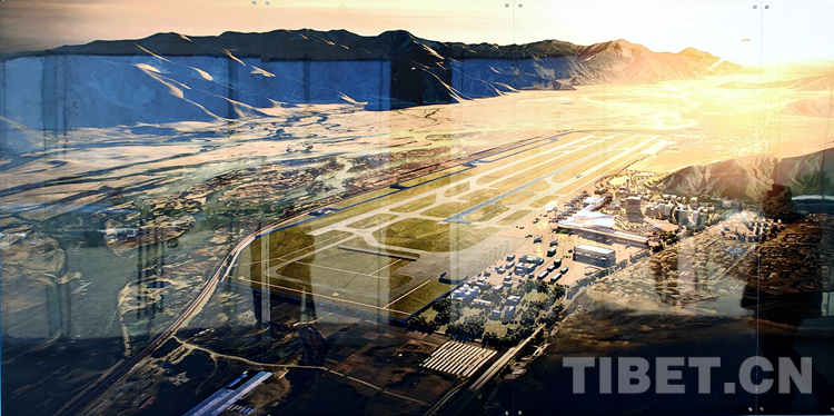 圖為拉薩貢嘎機場新建第二跑道建設(shè)完成后的拉薩貢嘎機場效果圖 翻拍:王佳豪