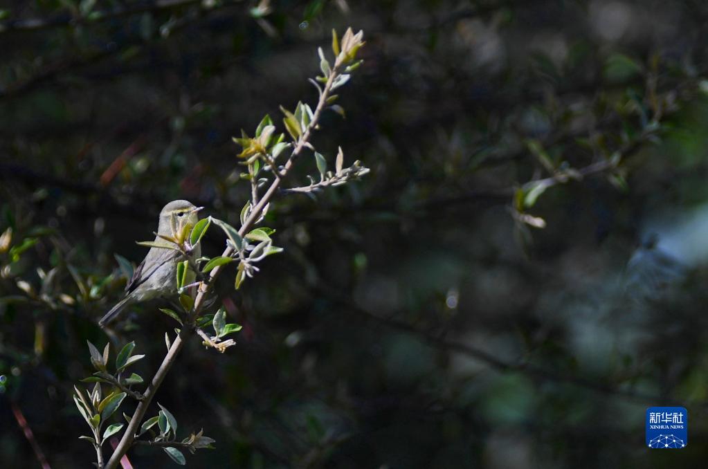 一只柳鶯在樹(shù)枝上起舞(4月25日攝)。新華社記者 張汝鋒 攝