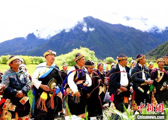 圖為村民背上經(jīng)文繞田。 鄧巴 攝