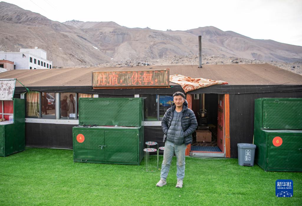 今年27歲的旦增是扎西宗鄉(xiāng)嘎熱村村民。他已在大本營(yíng)經(jīng)營(yíng)帳篷旅館近十年,“以前,游客來(lái)了只能睡大通鋪,用太陽(yáng)能板發(fā)電,用水還要從絨布河打水背過(guò)來(lái)?!钡┰稣f(shuō)。