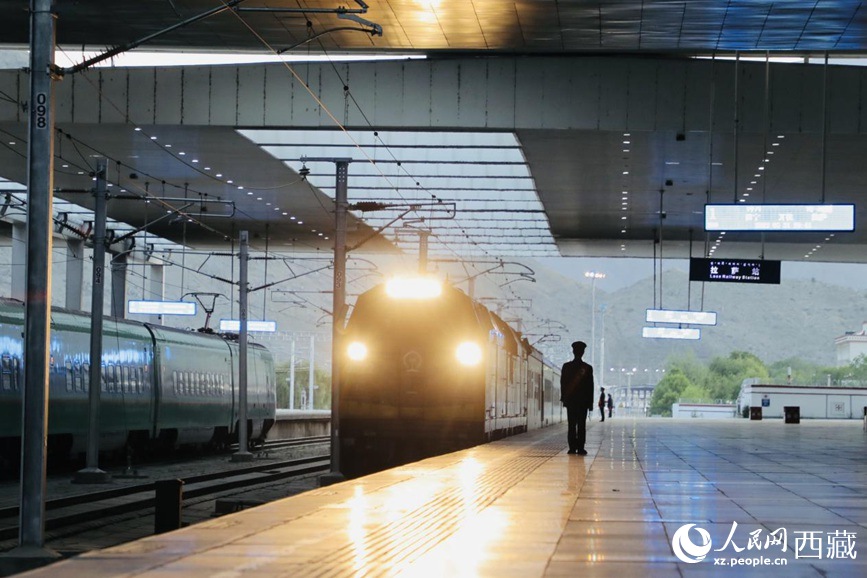 5月31日晚,隨著火車的抵達(dá),來自北京的500名游客乘坐 “心連心 京藏號(hào)”援藏旅游專列抵達(dá)西藏拉薩。