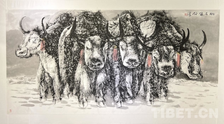 汪仕民介紹,此次《牦牛志·水墨西藏》個人作品展上,除了水墨作品外,還特地安排了一部分去年疫情封控期間的牦牛畫作和系列風景作品配合這次的展出,希望特殊時期的作品與這次牦牛水墨系列作品能給拉薩市民帶來一份愜意,和饕鬄般美的享受盛宴?!拔乙蚕Mㄟ^這次兩百余幅畫作的展出,陶冶豐富拉薩的情操與文化生活,也為西藏文化藝術(shù)發(fā)展盡一份綿力。”汪仕民說。