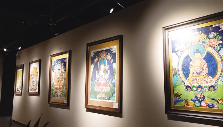 西藏大學(xué)藝術(shù)系研究生格桑感嘆:“看到羅布老師的作品,真的能感受到傳承人的不容易,一幅較大的唐卡需要半年乃至一年的時(shí)間才能完成,花費(fèi)的時(shí)間、精力和心血是無可比擬的。”