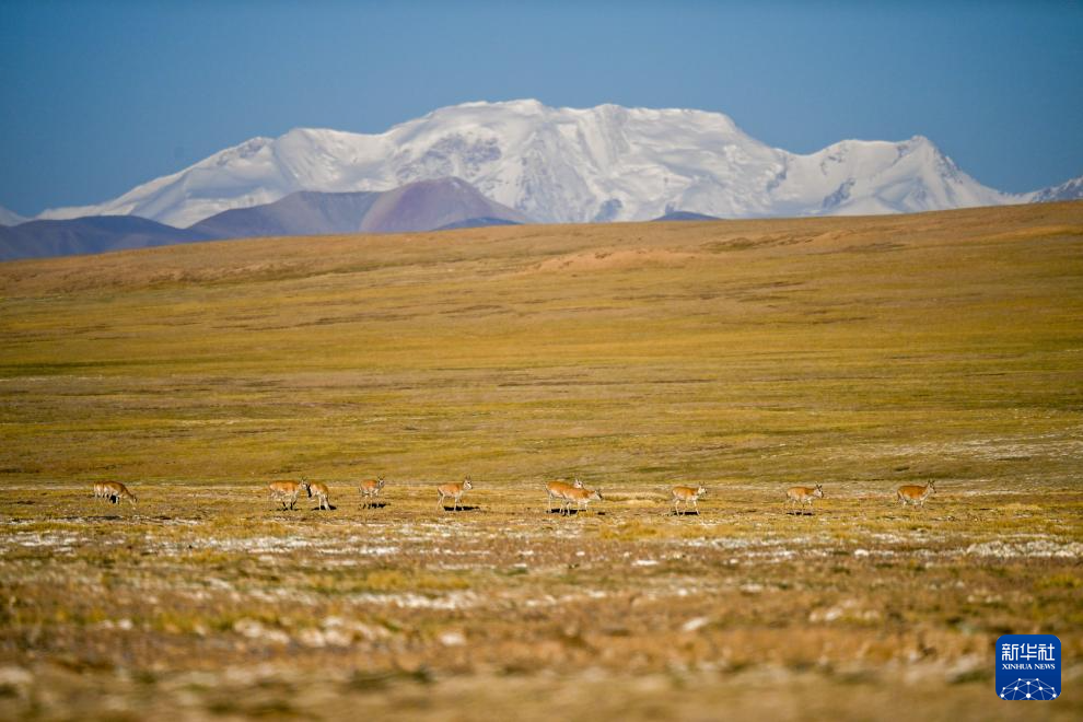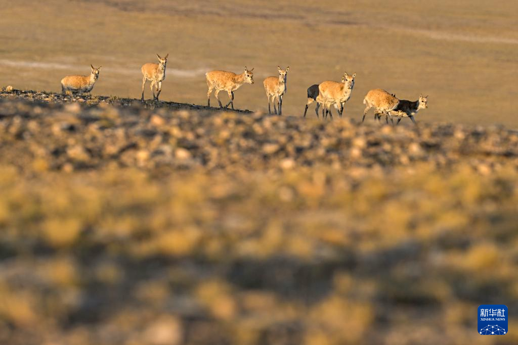 羌塘國家級自然保護(hù)區(qū)核心區(qū)繁殖遷徙路上的雌性藏羚羊群(6月10日攝)。新華社記者 姜帆 攝 ??