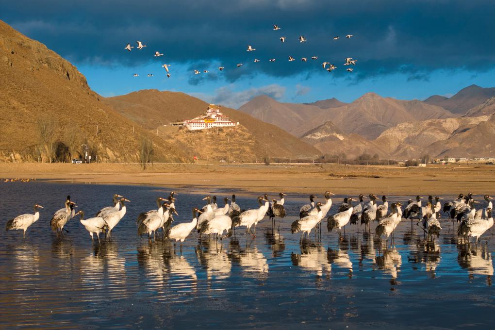 “潔白的仙鶴,請(qǐng)把雙翅借給我,不飛遙遠(yuǎn)的地方,到理塘轉(zhuǎn)一轉(zhuǎn)就會(huì)回。”這首在西藏家喻戶(hù)曉的民歌中提到的“仙鶴”,就是黑頸鶴。