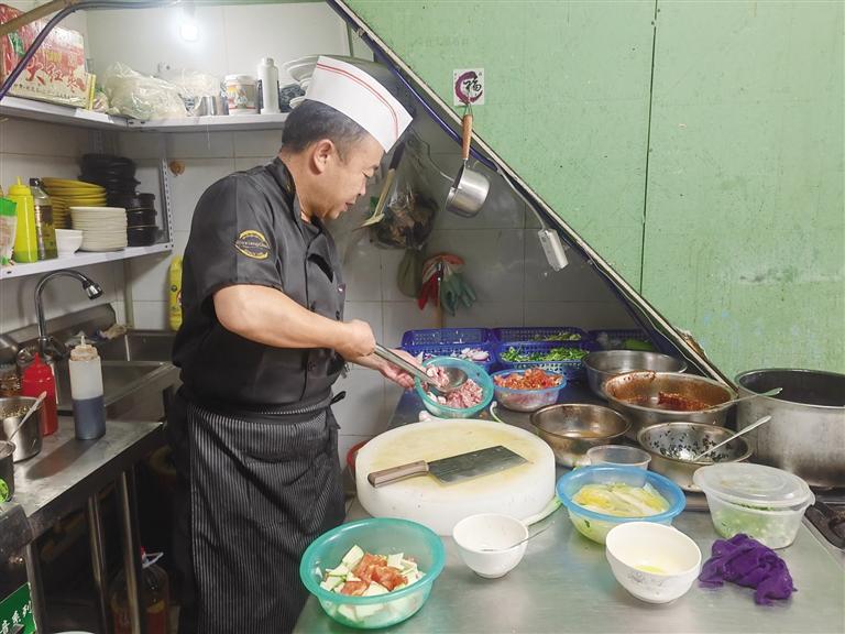 在事業(yè)發(fā)展過程中,王林生深知不斷學(xué)習(xí)的重要性。只有不斷學(xué)習(xí),才能取得進(jìn)步。一有空,他就和同行們交流新菜品、新創(chuàng)意,分享彼此的經(jīng)驗(yàn)和心得。晚上,等孩子們睡了,王林生也會(huì)坐在電腦前自學(xué)經(jīng)營管理課程?!白霾惋嬀偷貌粩嗾垓v,不能原地踏步。”他笑著說。