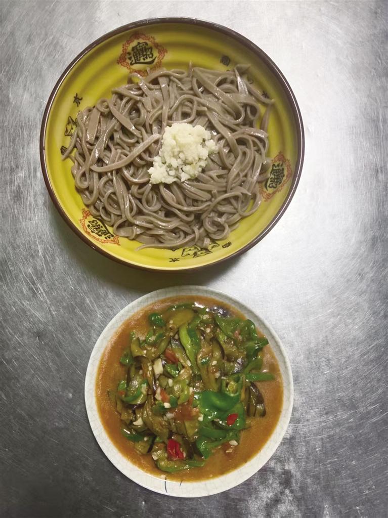 走進(jìn)麥香面莊,幾位客人熱烈地談?wù)撝ぷ骱蜕?,言語間滿是熱情。老板娘笑容滿面地招呼著客人。廚房?jī)?nèi),王林生則套著圍裙,燒水、下面、澆湯、加菜,動(dòng)作麻利得像練過千百遍。