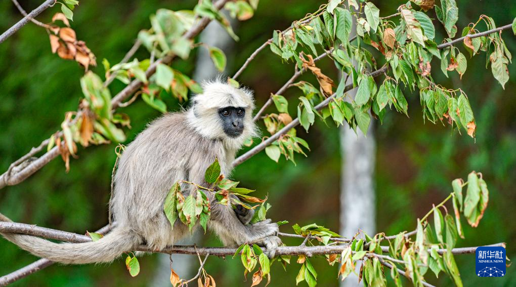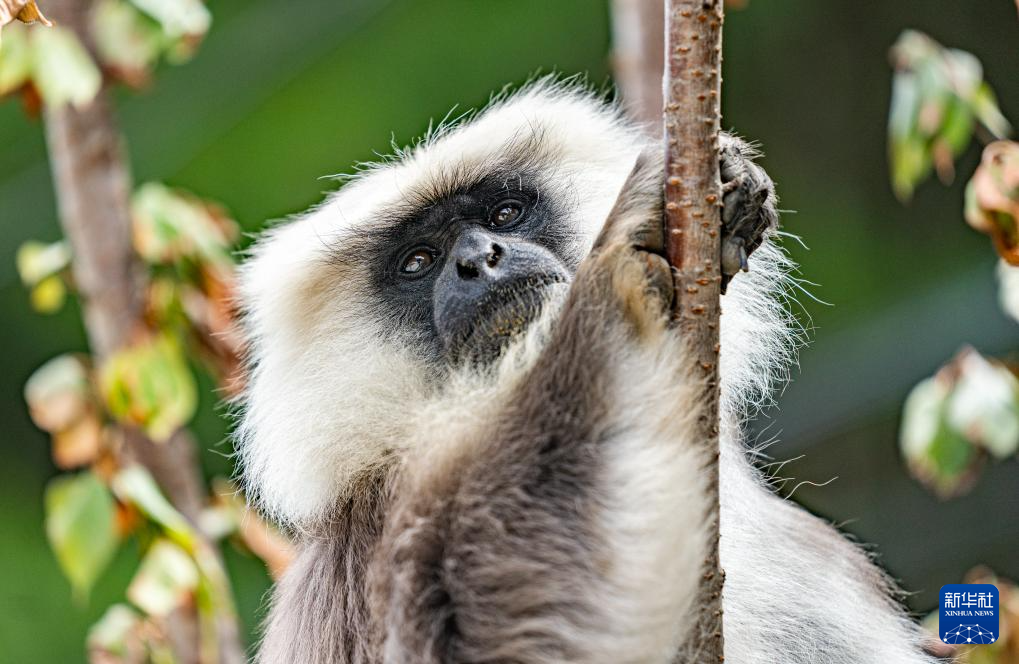 6月20日,在日喀則市亞東縣,一只長尾葉猴在樹枝上玩耍。新華社記者 丁增尼達(dá) 攝 ??