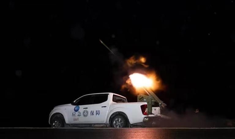 拉薩市人工影響天氣領(lǐng)導(dǎo)小組辦公室工作人員正在實(shí)施作業(yè)。 圖由拉薩市氣象局提供