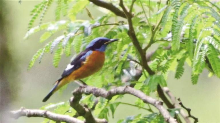 2025年6月,國家林草局西南調查規(guī)劃院在開展西藏雅魯藏布大峽谷國家級自然保護區(qū)資源本底調查項目——野生動植物資源生物多樣性補充調查任務時,調查人員在墨脫縣幫辛鄉(xiāng)朱村附近記錄到一種體型較小的鳥類,其頂冠和喉部為明亮的藍色,具黑色眼罩,背部黑色,翅膀具明顯白色斑塊,下體和下背部呈銹紅色。經專業(yè)人員鑒定為藍頭磯鶇,隸屬于雀形目鹟科磯鶇屬。通過比對雅魯藏布大峽谷國家級自然保護區(qū)鳥類名錄和查閱相關文獻資料,證實該鳥種是保護區(qū)的首次記錄。