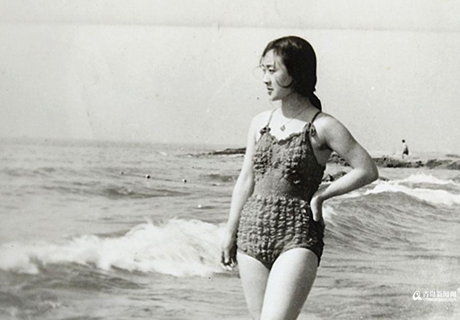 老照片里,青島女孩新潮的泡泡泳衣。