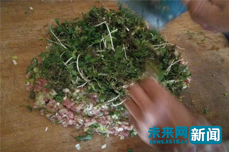 做薺菜餃子 受訪者供圖