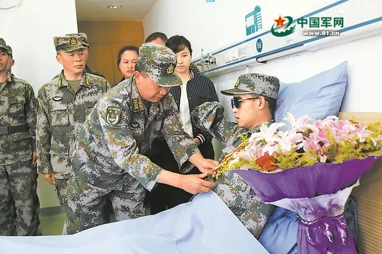 2018年11月24日,南部戰(zhàn)區(qū)陸軍云南掃雷大隊(duì)在病房?jī)?nèi)為杜富國(guó)舉行頒授一等功獎(jiǎng)?wù)潞妥C書(shū)儀式。周賢軍攝