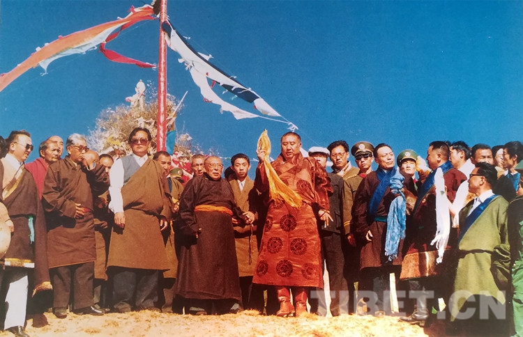圖為十世班禪大師在幸福灘上誦經祈禱,祝愿海南州昌隆、繁榮,各族人民幸福、吉祥。