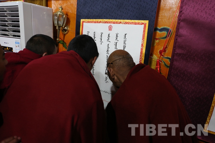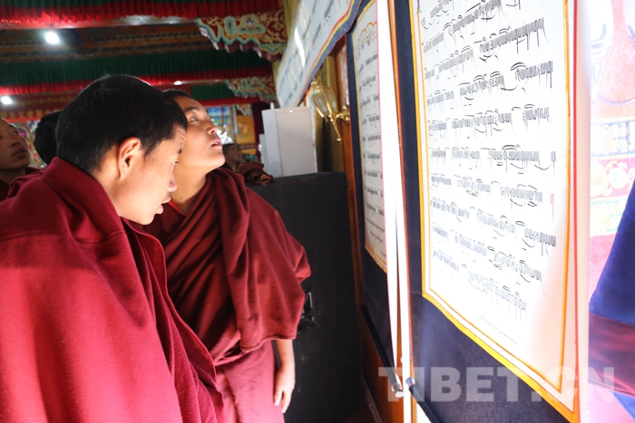 此次活動共征集書法作品80余幅,包含藏文、梵文、漢文、英文,其中藏文書法當(dāng)中又有烏金和烏梅體、草書體和古藏文體等多種書法類型,不僅展現(xiàn)了藏文書法精美多樣的字體和悠久歷史,而且表達(dá)了全寺僧眾深切緬懷大師的至真感情和銘記大師教誨,積極發(fā)揚(yáng)藏傳佛教愛國愛教優(yōu)良傳統(tǒng)的堅(jiān)定信心。(中國西藏網(wǎng) 記者/索朗加措、趙耀 圖片由扎什倫布寺寺管會提供)