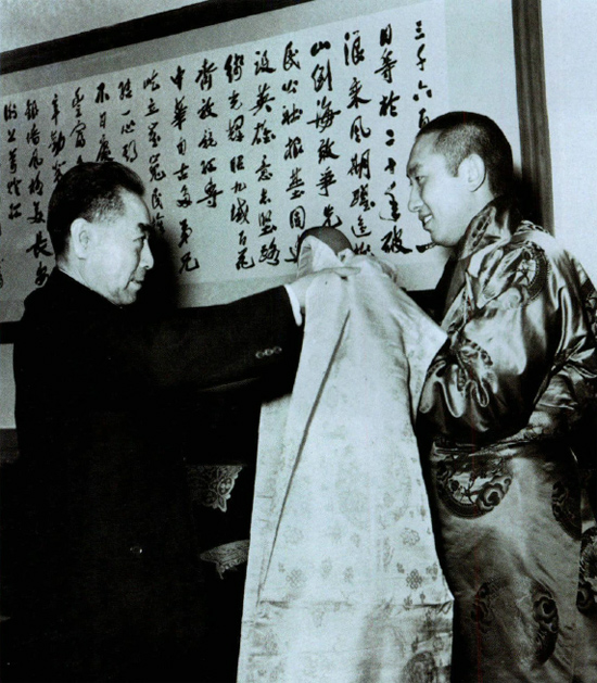 十世班禪向周總理敬獻(xiàn)哈達(dá)