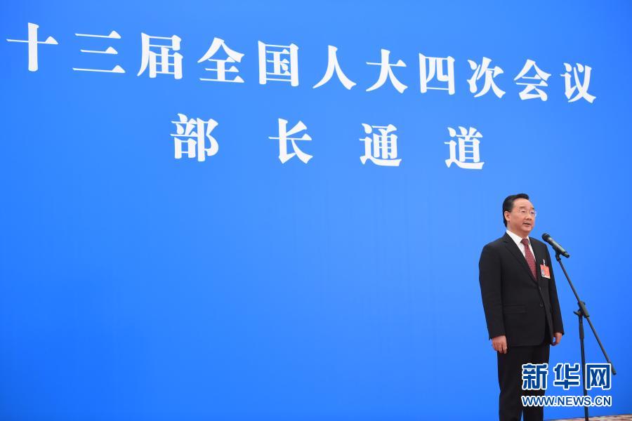 3月5日,第十三屆全國人民代表大會第四次會議舉行首場“部長通道”采訪活動(dòng)。這是財(cái)政部部長劉昆通過網(wǎng)絡(luò)視頻方式接受采訪。新華社記者 陳曄華 攝