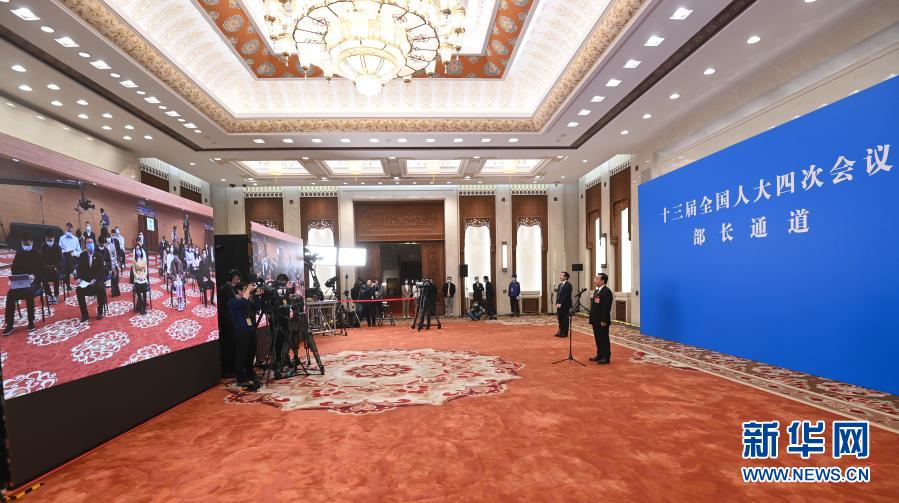 3月5日,第十三屆全國人民代表大會第四次會議舉行首場“部長通道”采訪活動(dòng)。這是記者在分會場通過網(wǎng)絡(luò)視頻方式采訪國家發(fā)展和改革委員會主任何立峰。新華社記者 曹燦 攝