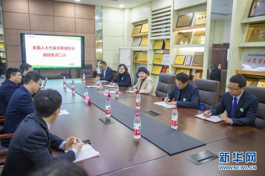 2月21日,在重慶市九龍坡區(qū)謝家灣小學(xué),劉希婭在與家長代表們座談時(shí)發(fā)言。新華社記者 黃偉 攝