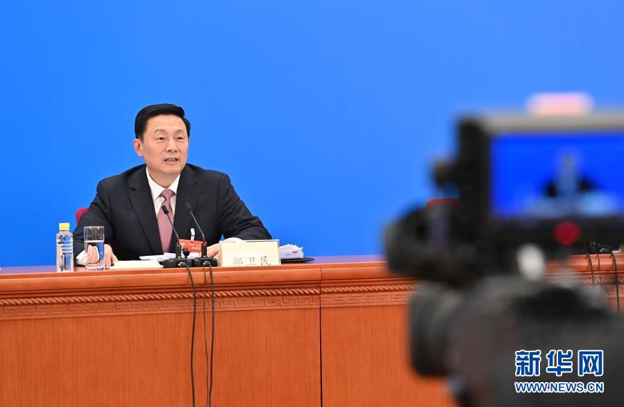 這是郭衛(wèi)民在主會(huì)場(chǎng)回答記者提問。新華社記者 李鑫 攝