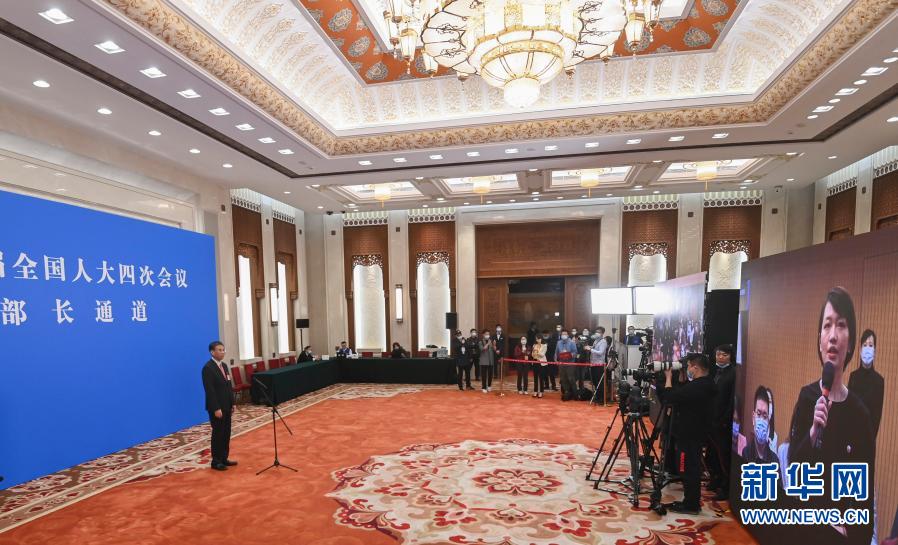 3月5日,第十三屆全國人民代表大會第四次會議舉行首場“部長通道”采訪活動。這是記者在分會場通過網(wǎng)絡視頻方式提問。新華社記者 曹燦 攝