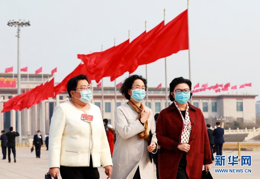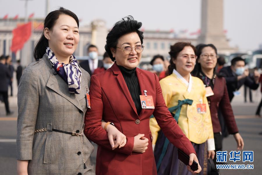 3月8日,十三屆全國人大四次會(huì)議在北京人民大會(huì)堂舉行第二次全體會(huì)議。這是女代表們走向會(huì)場。新華社記者 賀長山 攝