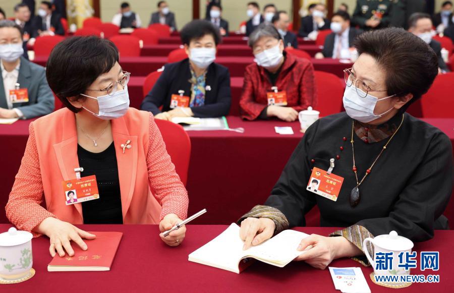 3月6日,王宜(右)委員和肖新月委員在全國政協(xié)十三屆四次會(huì)議醫(yī)藥衛(wèi)生界、教育界委員聯(lián)組會(huì)前交流。新華社記者 黃敬文 攝