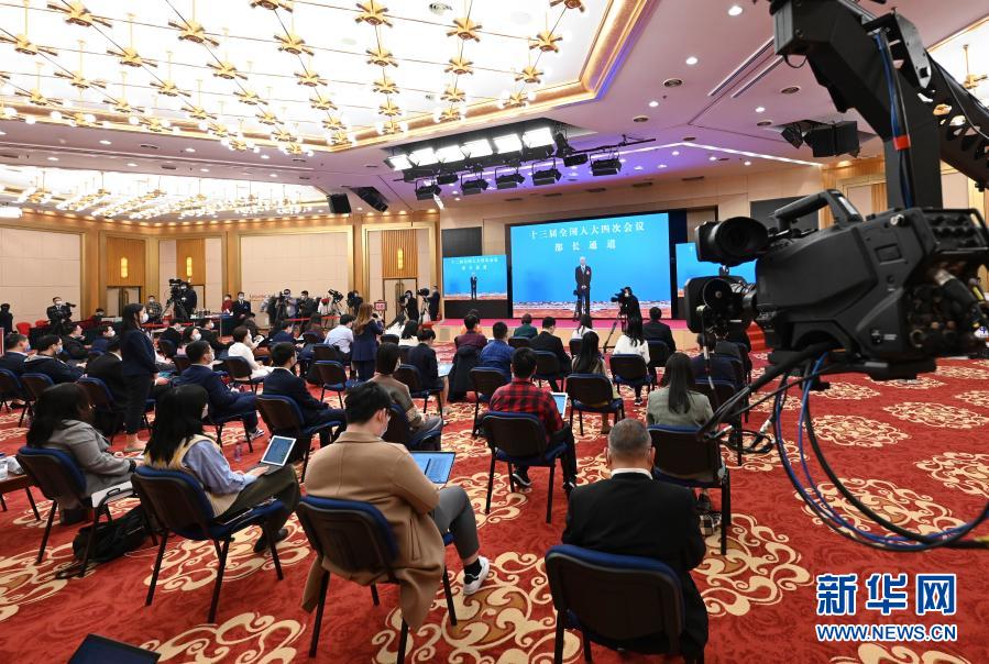 3月8日,第十三屆全國(guó)人民代表大會(huì)第四次會(huì)議舉行第二場(chǎng)“部長(zhǎng)通道”采訪活動(dòng)。這是記者在分會(huì)場(chǎng)通過(guò)網(wǎng)絡(luò)視頻方式提問(wèn)。