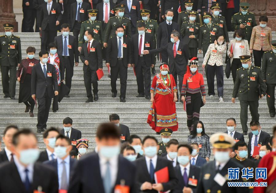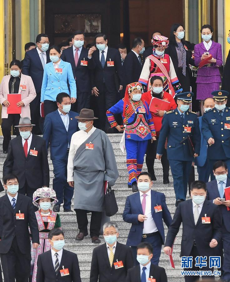 3月11日,第十三屆全國人民代表大會第四次會議在北京人民大會堂舉行閉幕會。這是閉幕會后,代表走出人民大會堂。新華社記者 王毓國 攝