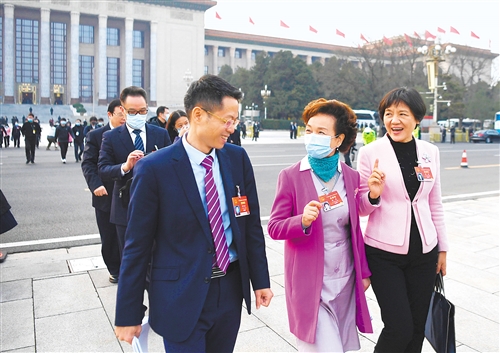3月8日,十三屆全國(guó)人大四次會(huì)議在北京人民大會(huì)堂舉行第二次全體會(huì)議。會(huì)后,人大廣東代表團(tuán)代表陳旭斌(左)、程萍(中)、郭姣(右)就宏觀政策保持穩(wěn)定等話題繼續(xù)交流。經(jīng)濟(jì)日?qǐng)?bào)-中國(guó)經(jīng)濟(jì)網(wǎng)記者 李景錄攝