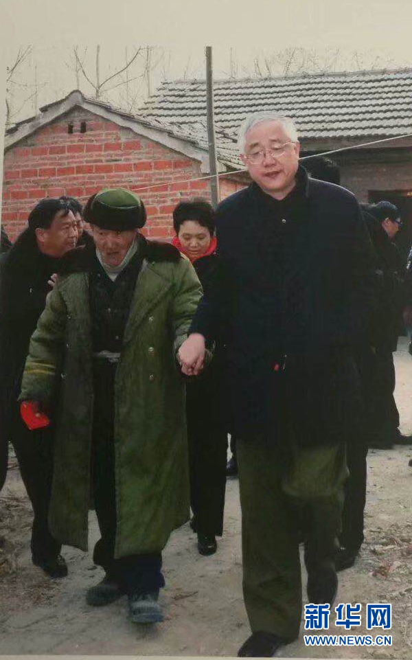 時任安徽省政協(xié)副主席的李宏塔(前右)在安徽阜陽市潁東區(qū)插花鎮(zhèn)慰問困難群眾(2011年1月14日攝)。新華社發(fā)