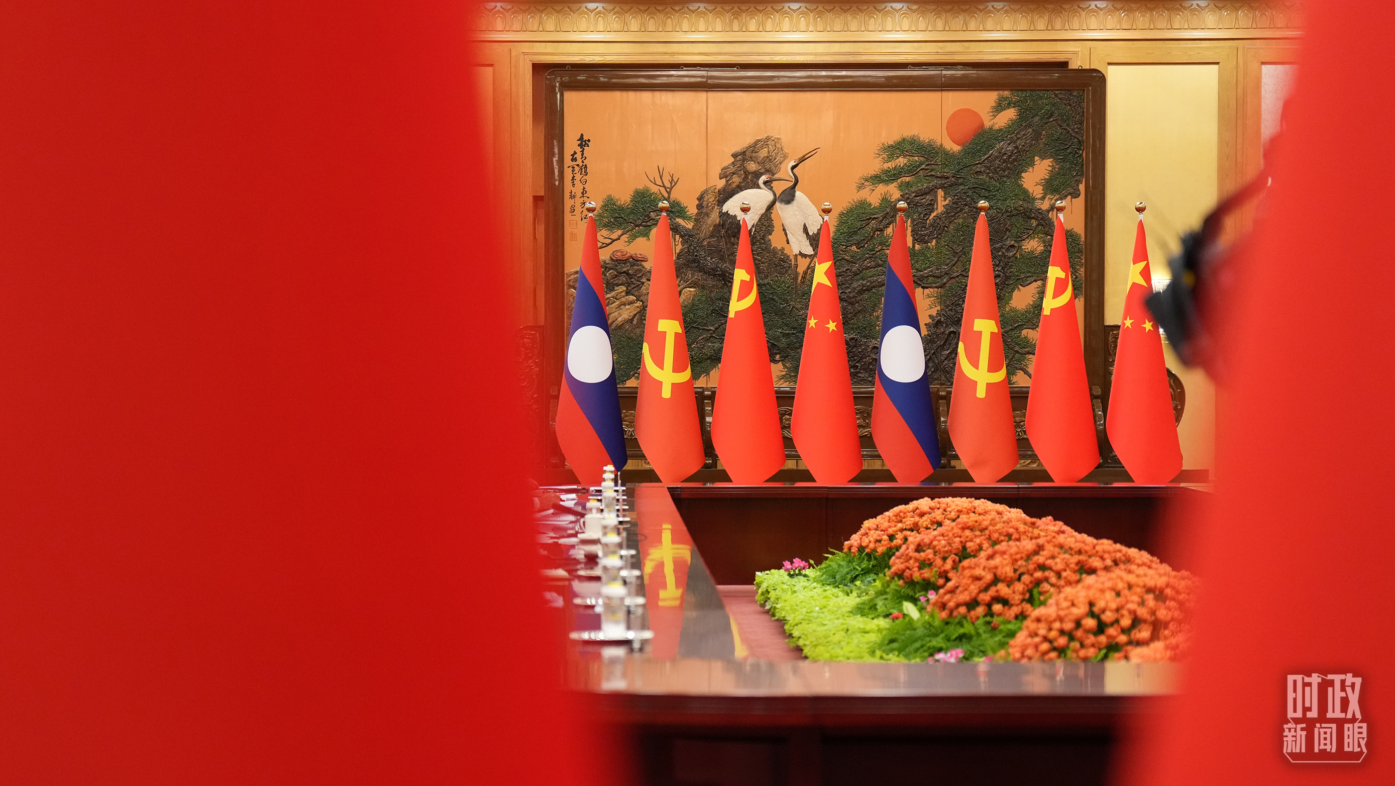 中老領(lǐng)導(dǎo)人會(huì)見(jiàn)現(xiàn)場(chǎng)。(總臺(tái)國(guó)廣記者李晉拍攝)