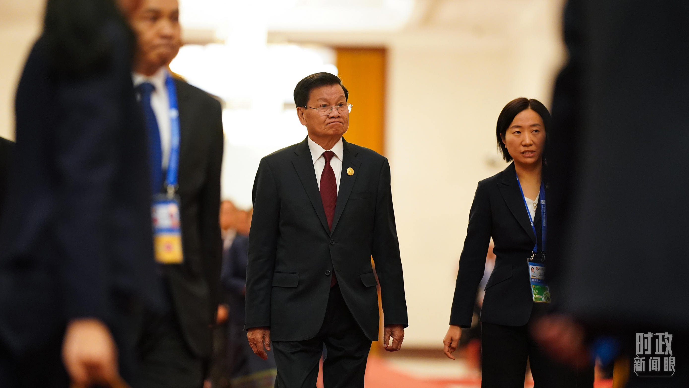 老撾人民革命黨中央總書(shū)記、國(guó)家主席通倫走向會(huì)見(jiàn)廳。(總臺(tái)國(guó)廣記者李晉拍攝)