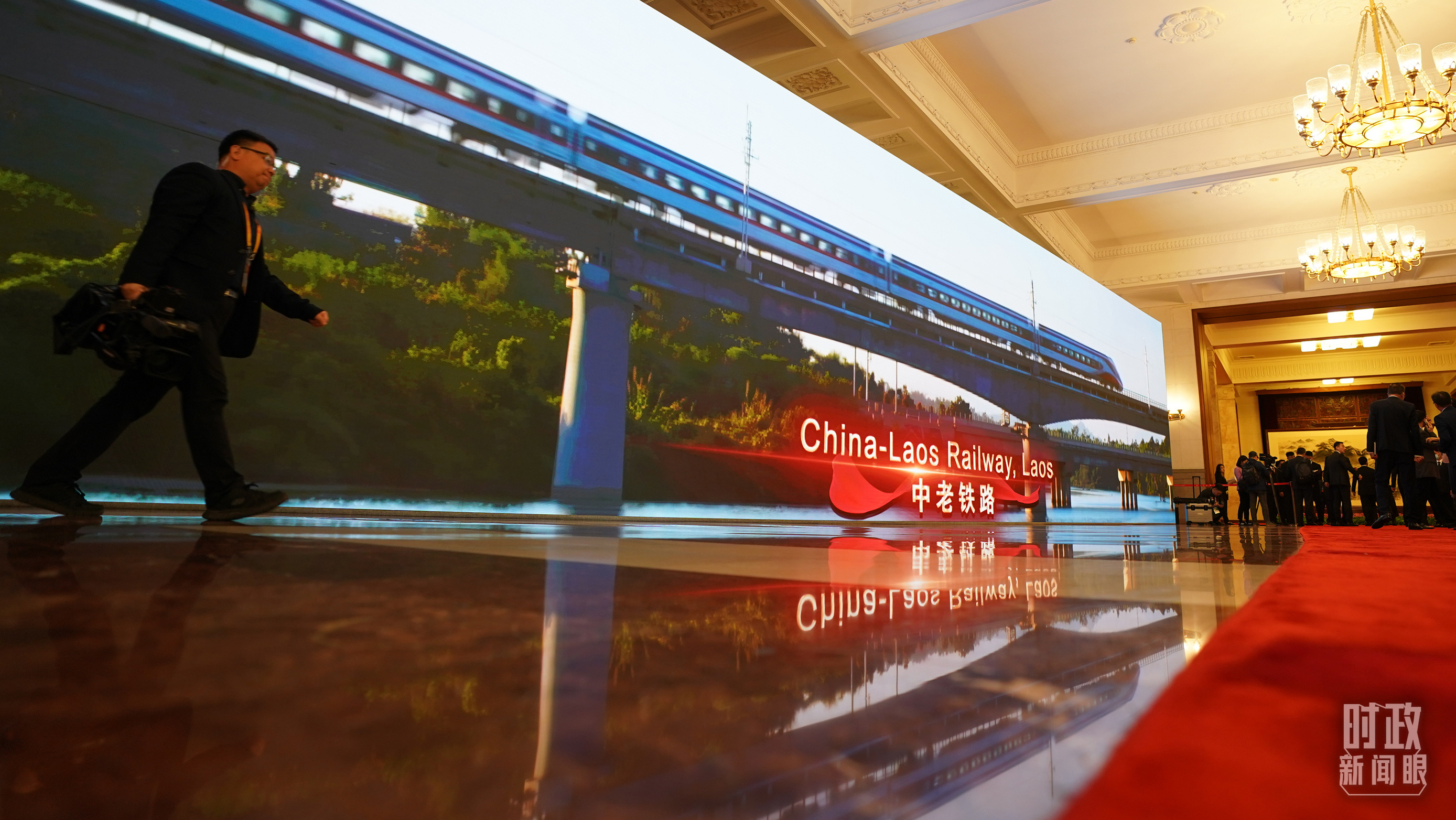 人民大會(huì)堂內(nèi)大屏幕展示共建“一帶一路”合作項(xiàng)目。(總臺(tái)國(guó)廣記者李晉拍攝)